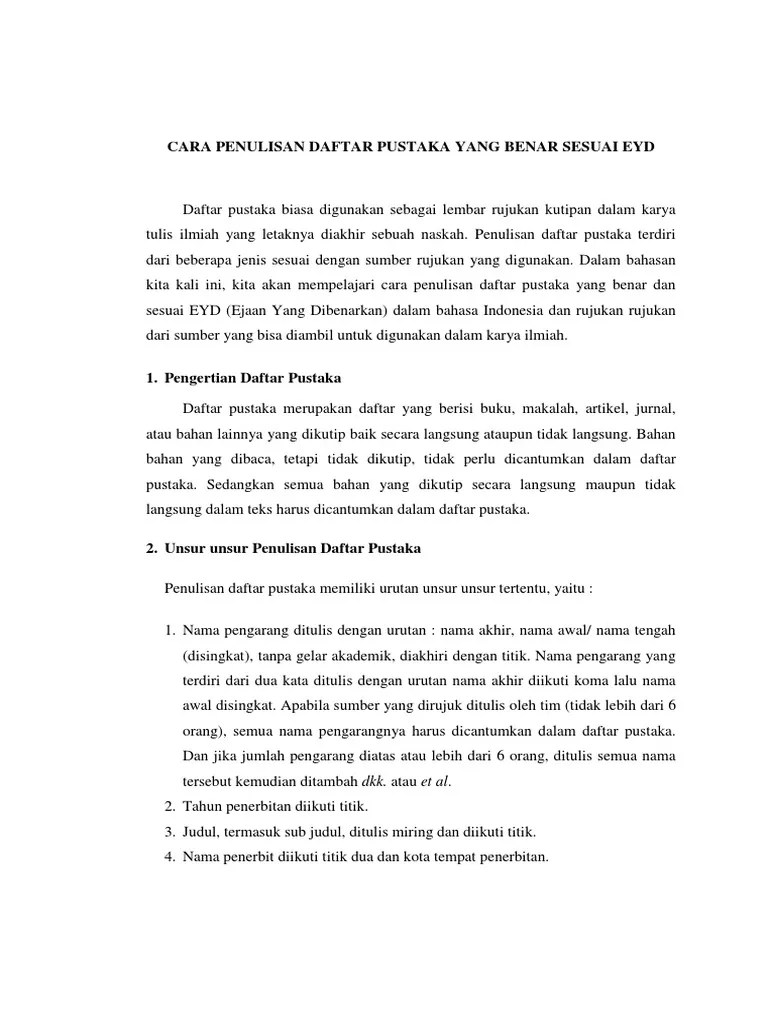 penulisan gelar akademik erat kaitannya dengan aturan eyd tentang penulisan singkatan serta pemakaian tanda titik dan koma. Liputan6.com, jakarta cara menulis daftar pustaka jurnal dan buku perlu diperhatikan mulai dari penulisan bukunya, nama penerbit, penulis, dan lain sebagainya. Maka dari itu, agar penulisan daftar pustaka sesuai dengan kaidah bahasa indonesia serta sesuai dengan eyd (ejaan yang disempurnakan) yang berlaku, berikut penjelasan tentang cara menulis daftar pustaka yang baik dan benar. Berikut beberapa tips dan cara menulis daftar pustaka dari internet dengan standar penulisan yang benar : Untuk menulis gelar sesuai dengan eyd, aturannya adalah sebagai berikut.